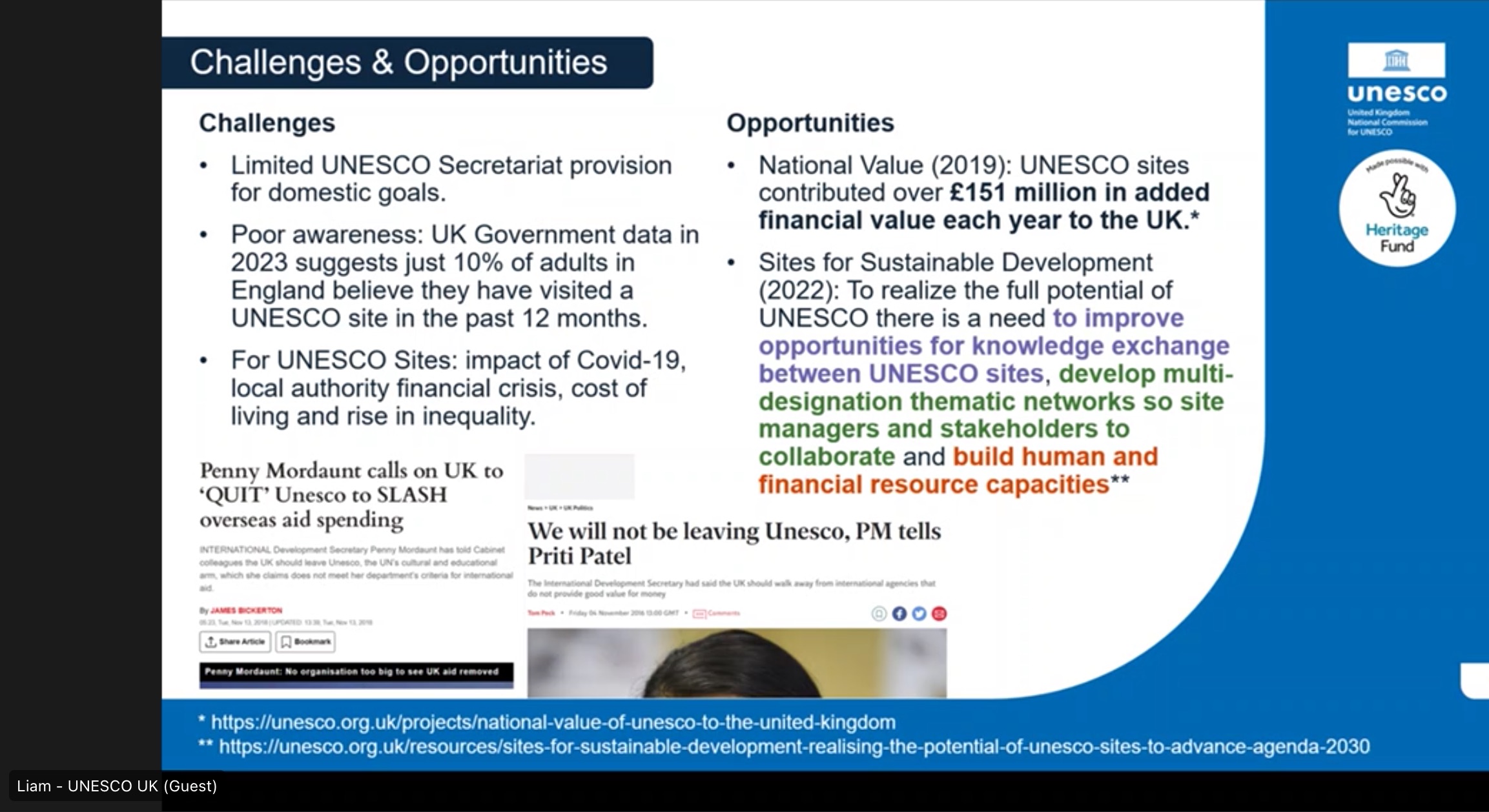 - Limited domestic support: As the UK National Commission for UNESCO reports directly to the Foreign Office, there was little provision for public-facing awareness or engagement.